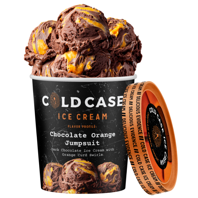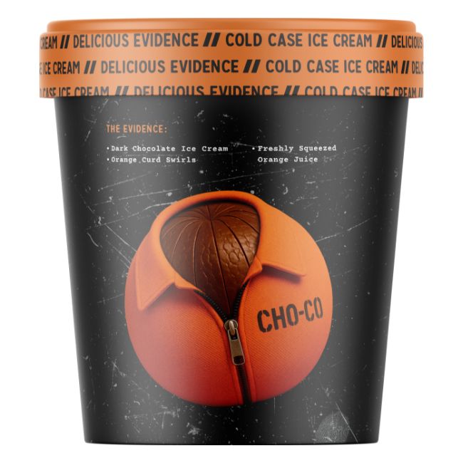 Dark chocolate ice cream, orange curd swirls, freshly squeezed orange juice